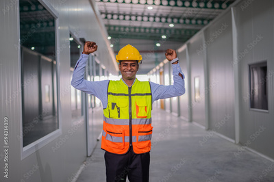 Asia people are engineer concept, Indian man engineer standing confident in factory