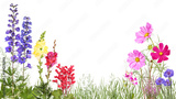 Meadow with delphinium, snapdragons, cosmos flowers, cornflower and others