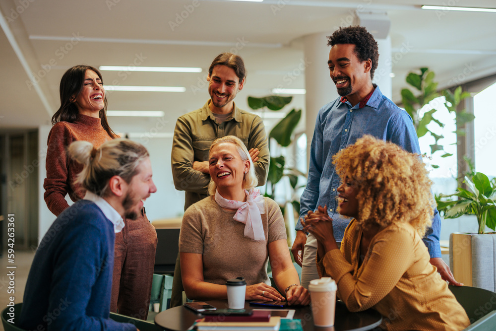 Cheerful businesspeople informal meeting.