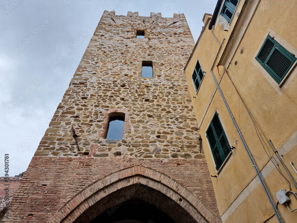 clock tower of noli medieval village liguria italy
