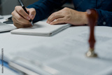 Contract law or paper work business and finance document rubber stamp. For official and legal contracts and agreements, financial statements, investment contracts, real estate documents.