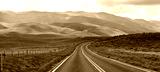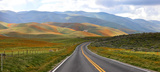 Scenic byway through Carrizo plain national monument in California , Hills are painted with colorful wildflowers.