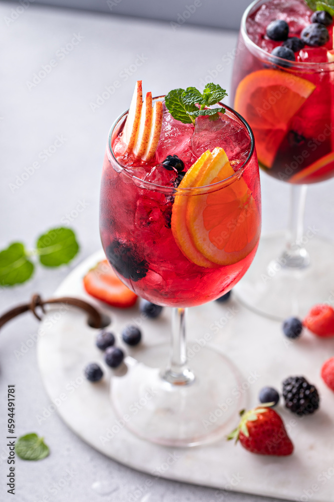 Refreshing summer berry sangria with apples and oranges