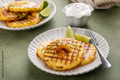 Grilled pineapple with lime honey glaze and whipped cream