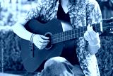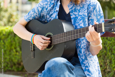 Anonymous musician playing guitar in park