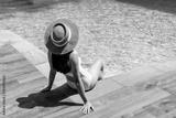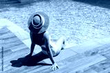 Beautiful girl in swimsuit relaxing by the pool during her summer holiday. Copy space. Summer and vacation, sunbathing wellness Lifestyle concept.