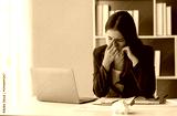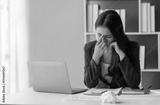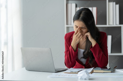 tired business woman sleepy and bored from sitting at a desk for a long time and has office syndrome