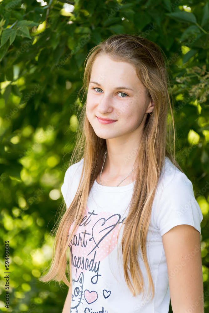 Portrait of a girl 14 years in nature