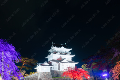 神奈川県小田原市 夜の小田原城と夜桜