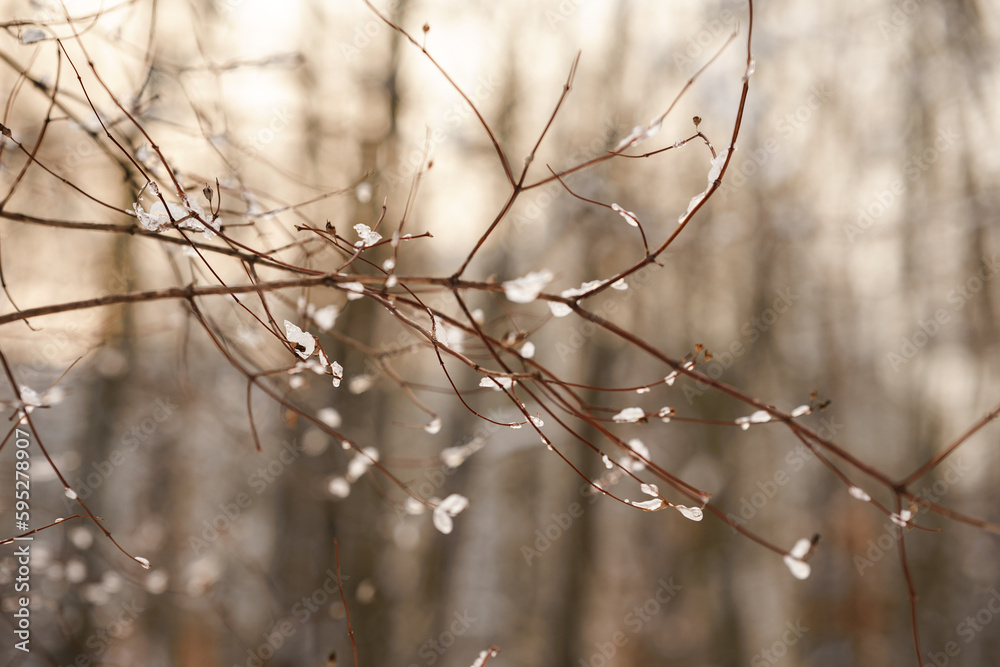 Twigs of trees with ice in winter