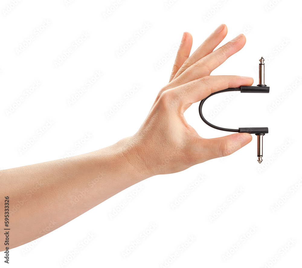 electric guitar pedal patch cable in hand path isolated