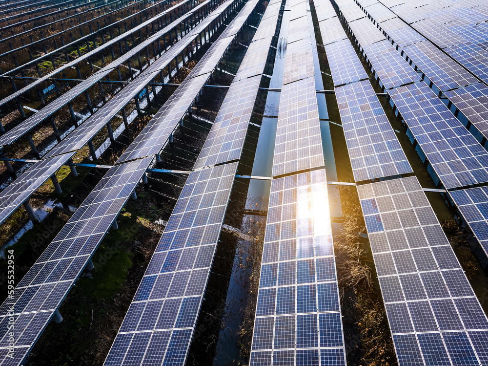 Aerial view of solar panels