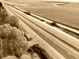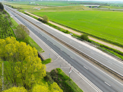 Drone view of part of anEnglish dual carriage way shown in the East Anglian countryside.