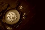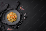 Delicious Uzbek pilaf with chicken, carrots, barberry, spices and herbs