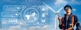 renewable electricity green energy from wind turbine generator, alternative power industry and sustainable technology in environmental ecology and sustainable development, environment windmill farm