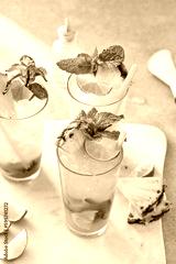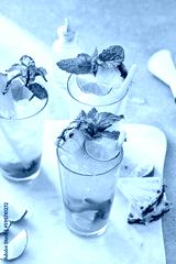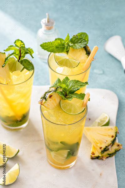 Pineapple mojito with limes and mint and a slice of pineapple