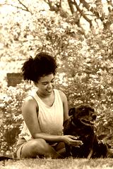 A multi-ethnic woman and her happy dog, giving attention in the park pet owner