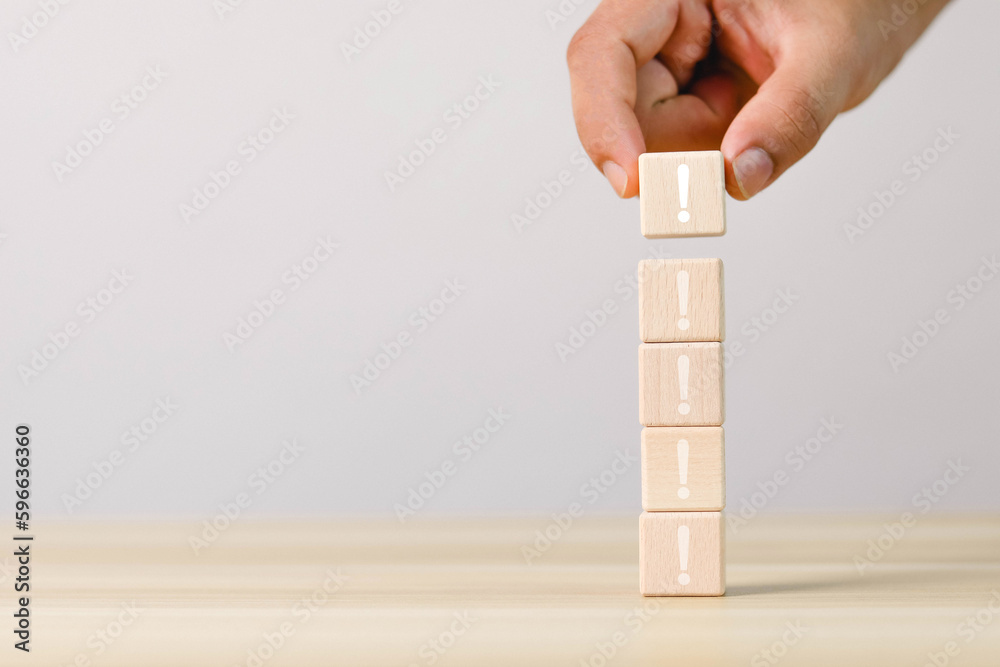 wooden blocks with exclamation marks arranged or arranged