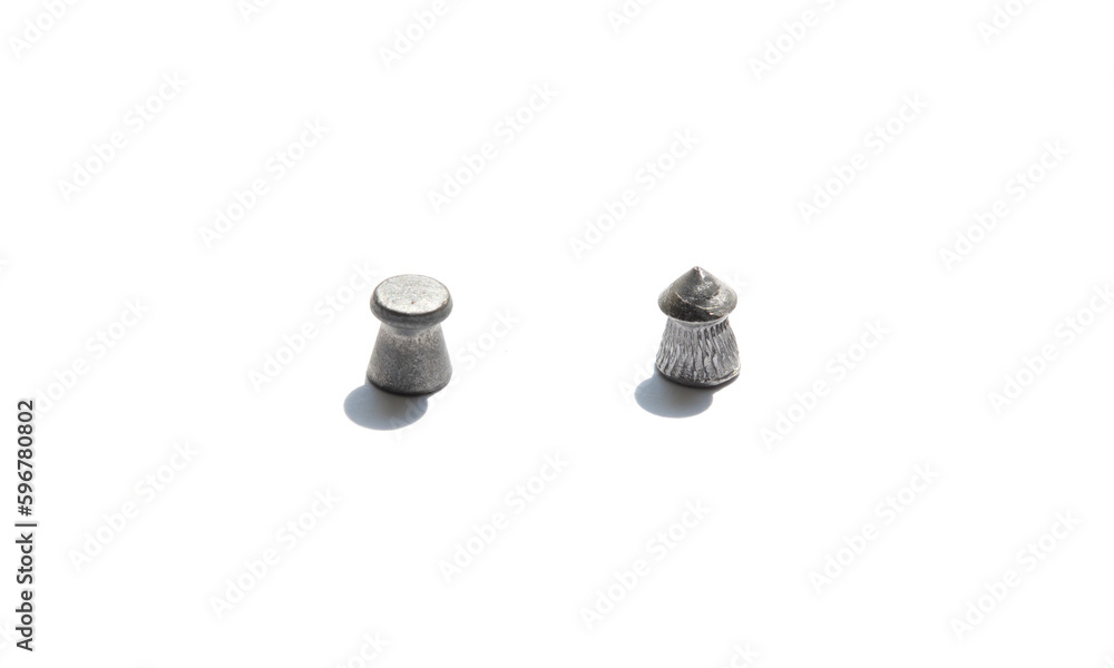 Two different kinds of metal pellets, pneumatic gun ammo, pointy and dull, sharp and dull objects simple abstract concept. Opposites, differences, differing objects, vs. comparison conceptual shot