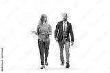 Mature woman walking and smiling with a younger man