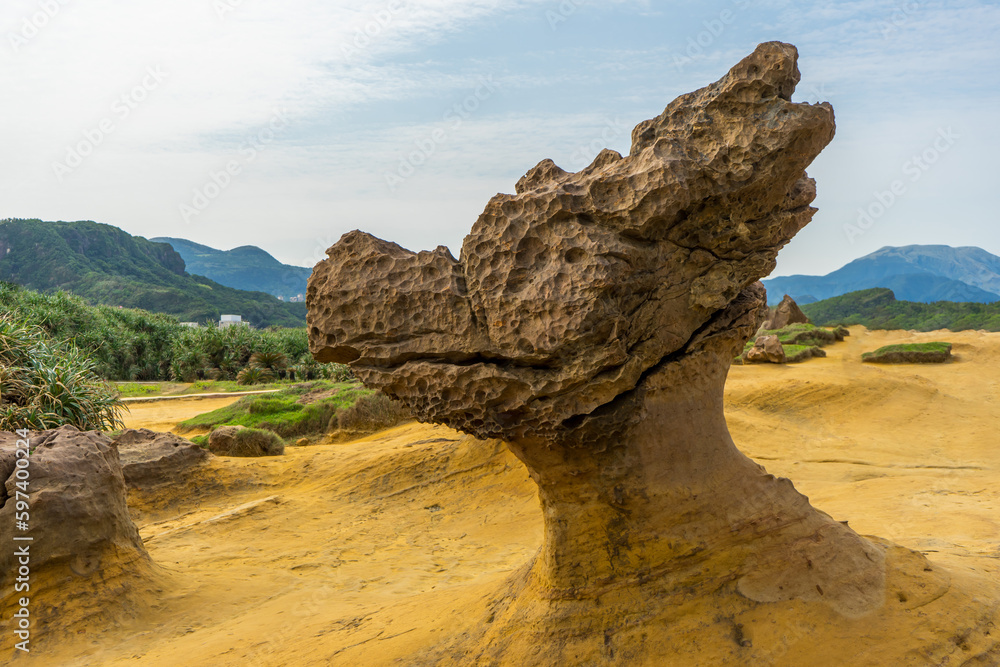 Rocks that are eroded by nature present the shape of the Dragon's Head Rock at Yehliu Geopark, New taipei city, Taiwan