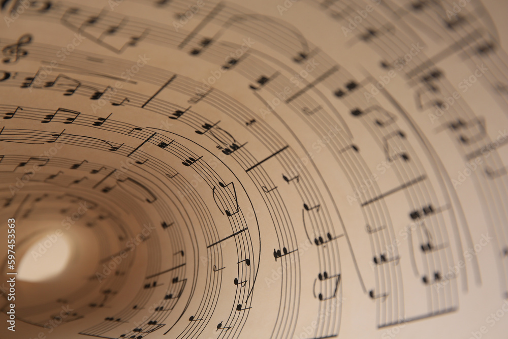 Closeup view of sheet with music notes