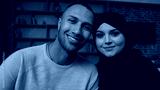 Spouses family multiracial diverse ethnicity couple man african american husband and arabian muslim woman wife smiling multiethnic girlfriend boyfriend posing together 30s happy homeowners portrait