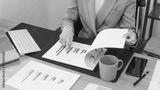Secretary concept, Female secretary checks data and reads business document while working in office