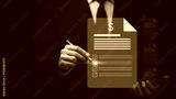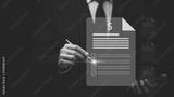 Businessman checking financial documents ,accountant auditing documents ,quality assessment management With a checklist , business document evaluation process ,operator makes mark on survey topic