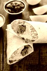 Breakfast burritos with scrambled eggs, sausage, cheese and potatoes
