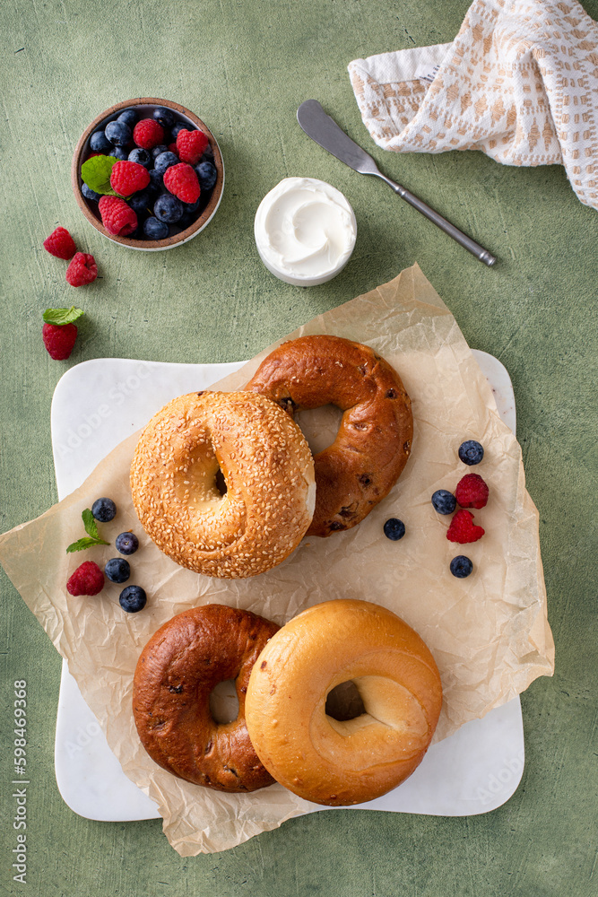 Homemade freshly baked bagels ready to eat