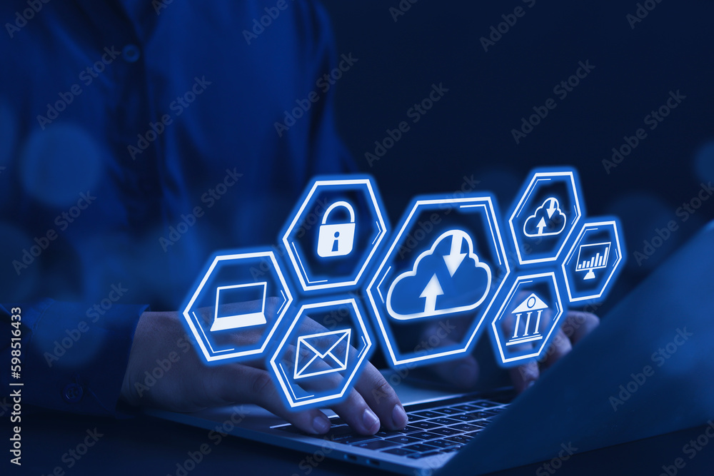 Cloud computing diagram shown in hand cloud technology storage The concept of networks and internet services.