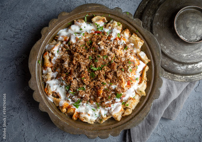 Turkish traditional food of Kastamonu tirit meal, yoghutr and bread. Turkish name; tirit kebabi