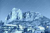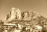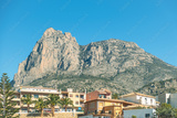 Beautiful view of Puig Campana Mountain and Finestrat old town in Alicante province, Spain