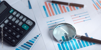 magnifying glass calculator graph statistics business data analysis concept ,manage financial and marketing documents ,Statistics and Data Concepts ,update annual budget accounts