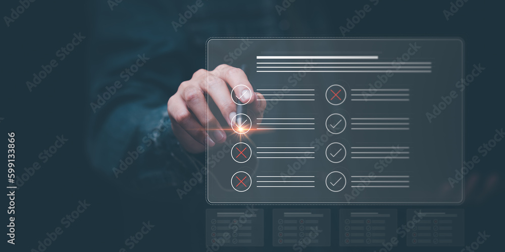 operator makes mark on the survey topic ,checkbox to conduct opinion and quality surveys or satisfaction , quality inspection ,checklist ideas ,answering questionnaires ,Online Assessment
