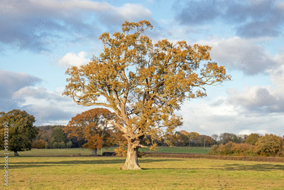Oak trees in the Autumn meadow