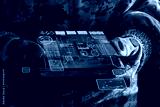 AI Command of the military forces on the tablet computer with augmented reality. Internet, Programming control with artificial intelligence, online coordination of the military team.
