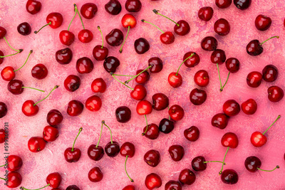 Cherry harvest. Red fresh juicy raw berries