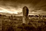 Alignement mégalithique, arrangement de menhirs au lever du soleil Carnac, Bretagne, France