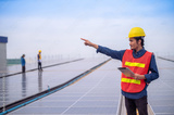 portrait of Asian man engineer construction concept, Asian man engineer in construction site, Worker in building construction site, worker helmet confident copy spec, worker in safety suit at work