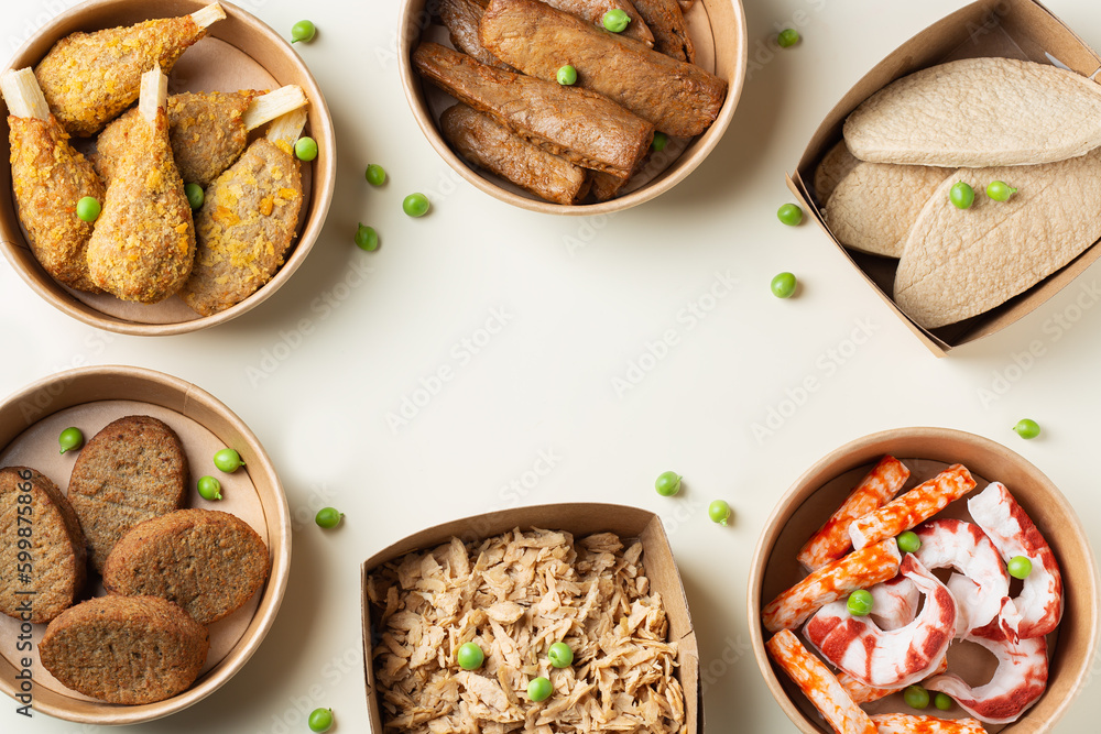 Variety of plant based meat, food to reduce carbon footprint