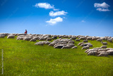 Bacówka w Czarnem i okolice w Beskidzie Niskim. Stado owiec na zielonym pastwisku.