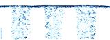 Oxygen bubbles in transparent liquid underwater with bubbles rising on water surface on white background.