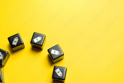 Price tags. Copy space. Sale, black friday. Sale of goods. Best special offers on market. Highlighted prices. Shopping and retail. Marketing, loyalty programs and discounts to attract customers.