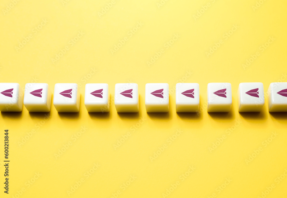 Symbols of paper airplanes on blocks. Set course, make your way. Keep moving forward and making progress. personal growth, career development, entrepreneurship, and self-improvement
