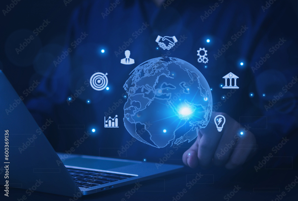 business people use Global internet connection application technology for business and digital marketing. finance and banking digital link technology big data
