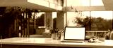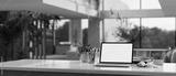 Home workspace with laptop mockup on white table in modern contemporary living room