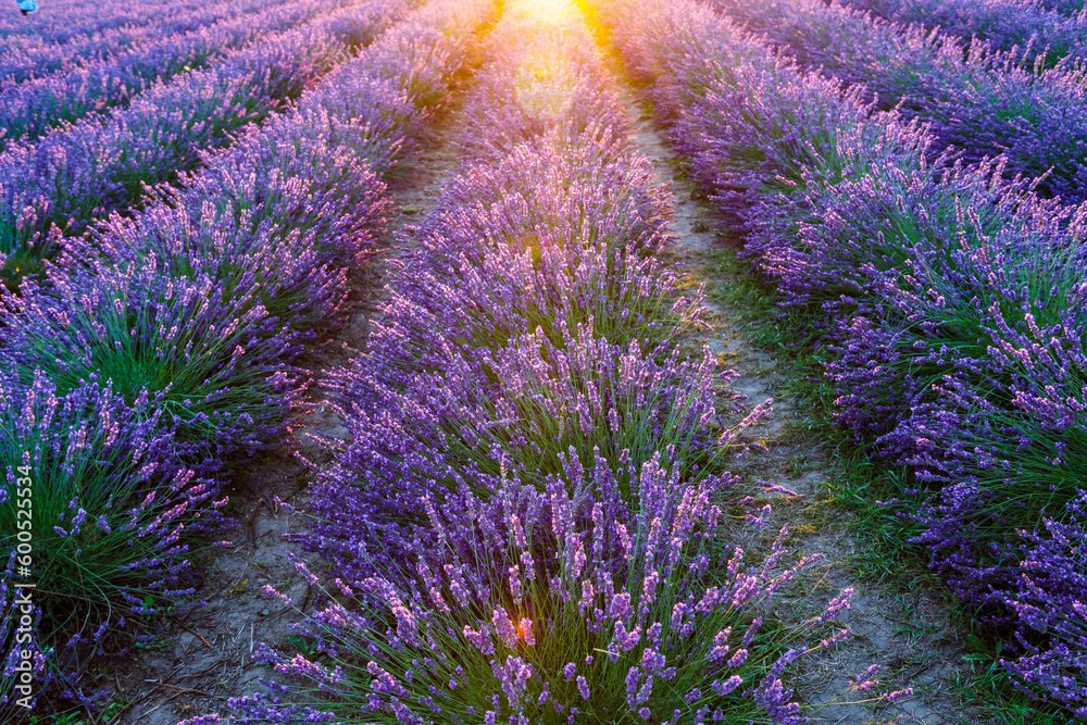 Lavender field.Beautiful image of lavender field Summer sunset. French Provence.Harvesting. Beautiful sky.Lavender in the garden.