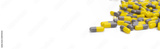 Yellow and gray probiotic capsule pill on white background. Probiotic supplement. Gut health. Dietary supplements. Probiotics for a healthy gut. Lactobacillus acidophilus and Bifidobacterium animalis.